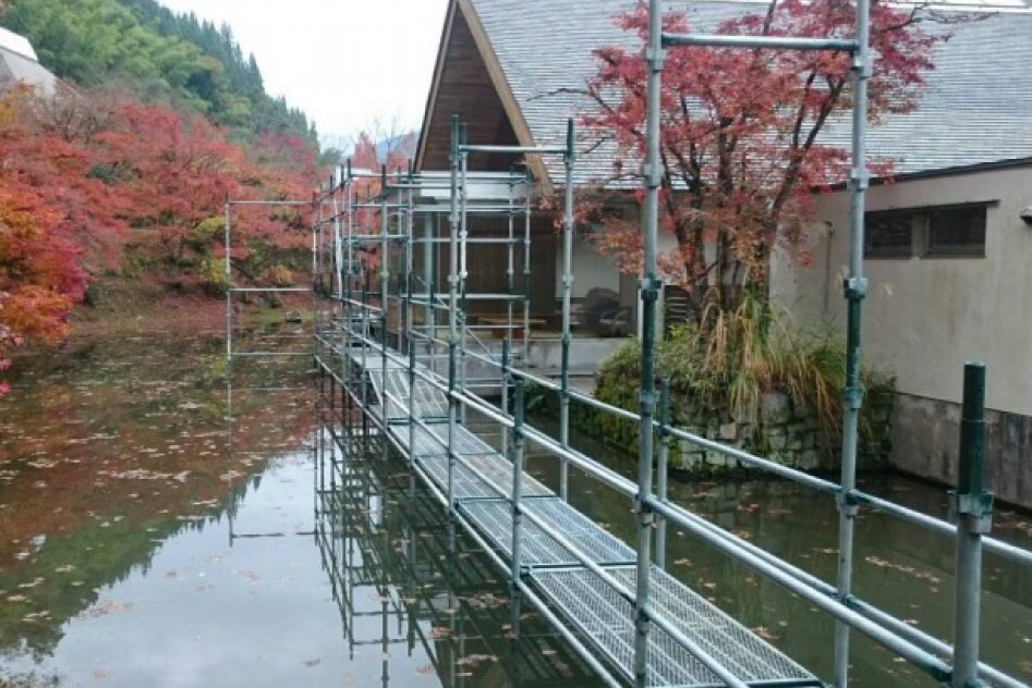 民間・公共問わず、主に建築現場における足場の組み立て・解体を手掛けています。足場にも丸太や鉄骨など様々な素材があり、それぞれ組み方も異なるため、職人技が必要になってきます。